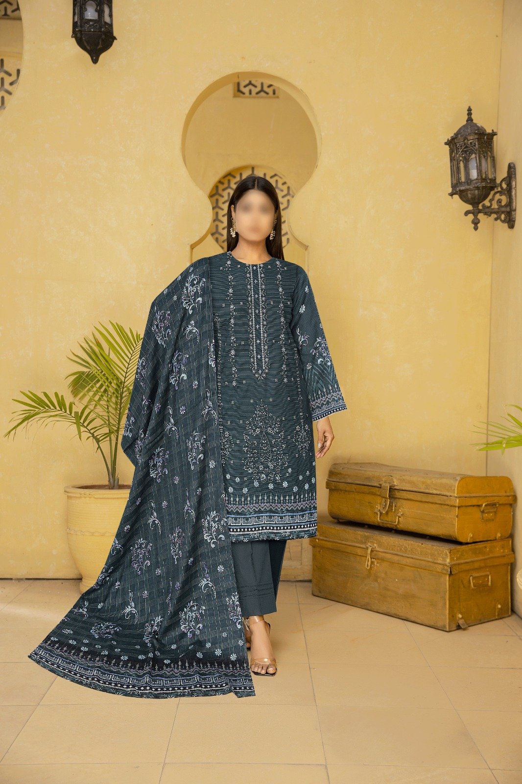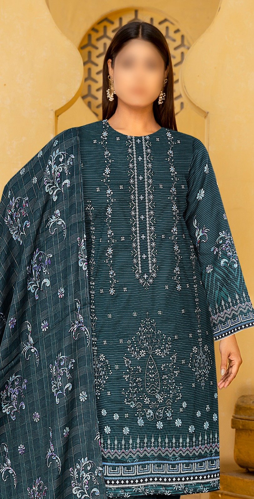 3PC Embroidery Lawn With Fancy Dupatta-529
