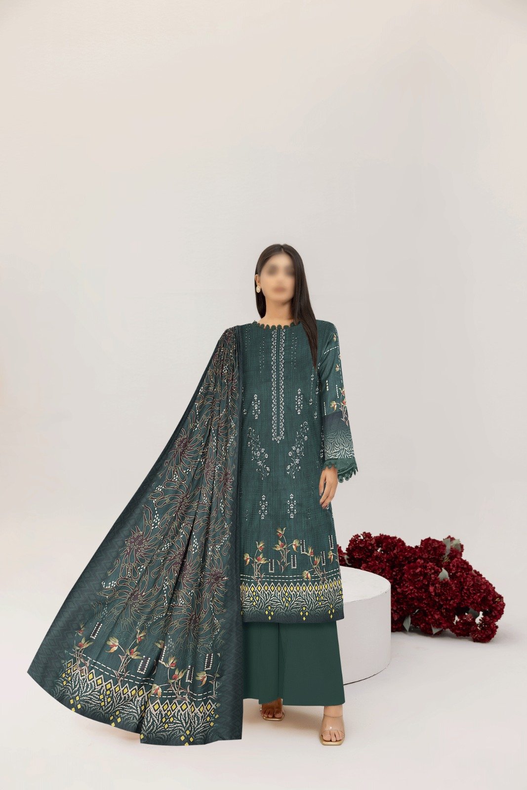 3PC Embroidery Lawn With Voil Dupatta-540