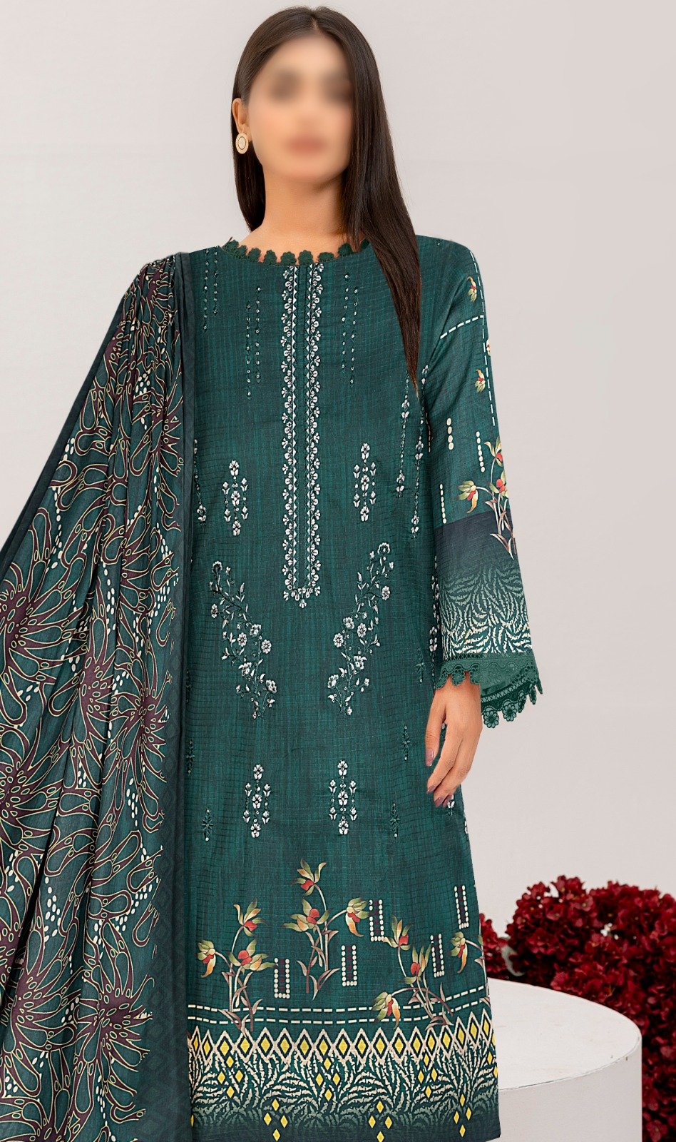 3PC Embroidery Lawn With Voil Dupatta